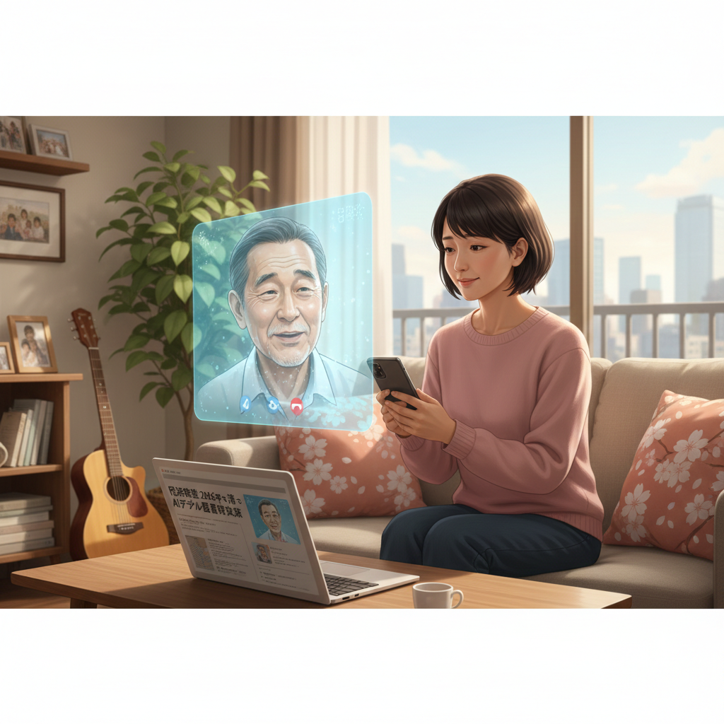 かつての「故人再現AI」は、過去の発言を模倣するだけのチャットボットに過ぎませんでした。しかし2026年、Large Video Models (LVM) とマルチモーダル学習の融合により、技術は別次元に到達しました。 故人のわずか数十分の動画・音声データから、微細な表情の変化、特有の口癖、そして「その人らしい」思考パターンを85%以上の精度でクローン化。スマートフォンやVR空間を通じて、生前と変わらぬ対話が可能になっています。